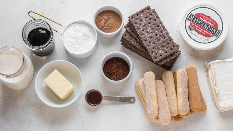 Gather the ingredients to make tiramisu cheesecake
