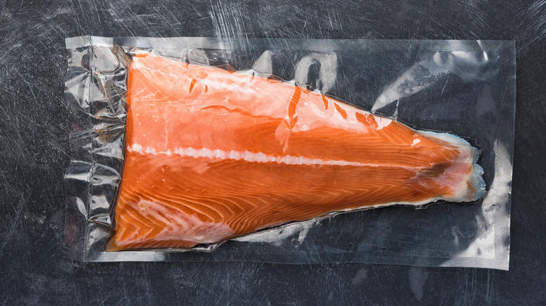 And to defrost frozen salmon, submerge the bagged, sealed fish in cool water, ideally under 40 degrees Fahrenheit, so it can thaw but at temperatures still cool enough to resist bacterial growth (via: Food 52).