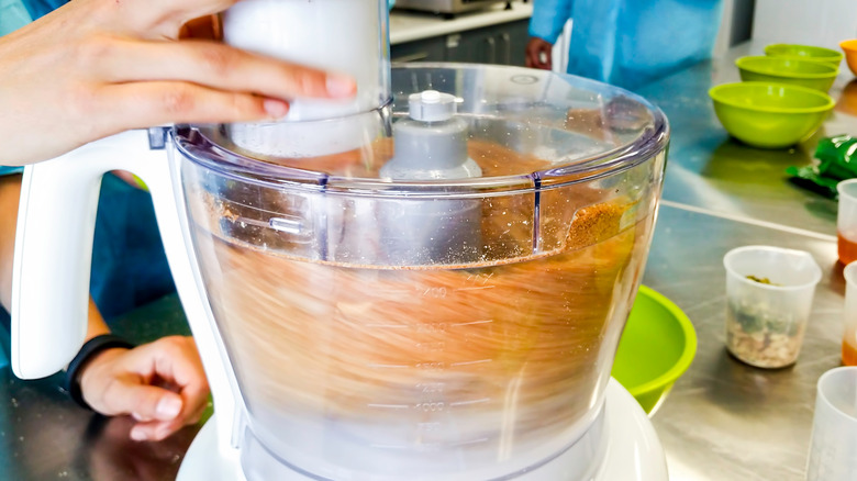 Those who are lucky enough to have a food processor or a blender in their kitchen can also use those speedy kitchen stalwarts to grate cheese in a flash. Most food processors come with a disc that fits at the top of the bowl that comes ready with grating holes in it. You can use that attachment, feeding cheese into the food processor to shred it (via Wide Open Eats). For a chunkier texture, try simply adding small chunks of cheese to the bowl with the regular blade and process or pulse them until the desired texture is reached.