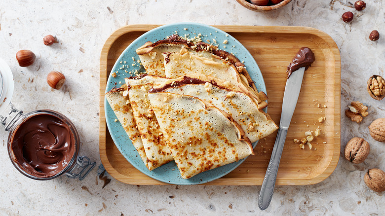 The opinions on how long the crepe batter should rest, vary. Some say 20 minutes is enough, while others chill it longer. The truth is that some rest is better than no rest, and realistically speaking, we're not always working with the same amount of time. At Tasting Table, we let the batter for our easy-peasy crepe recipes chill for an hour. If you're in a pinch, however, let the mixture rest while you're prepping the fillings. Chilling overnight is a great option, too, especially if you're planning to make crepes for breakfast.