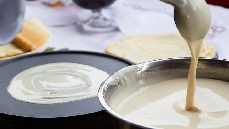 In some European countries, learning how to make good crepes is almost like a rite of passage. Though the recipe is pretty straightforward, everybody knows that the smallest tweaks to the ingredients or technique can yield a very different end result. While we're mostly aiming to fill the crepes with delicious ingredients, the flavor and texture of the papery-thin pancakes is still important — and one of the best ways to ensure they're perfect is allowing the batter to rest in the fridge, before cooking.