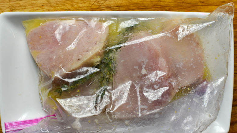 - Place in a zip-top bag, and add the marinade.