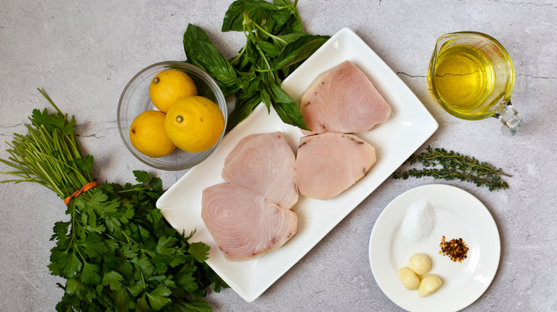 Gather the ingredients for grilled swordfish