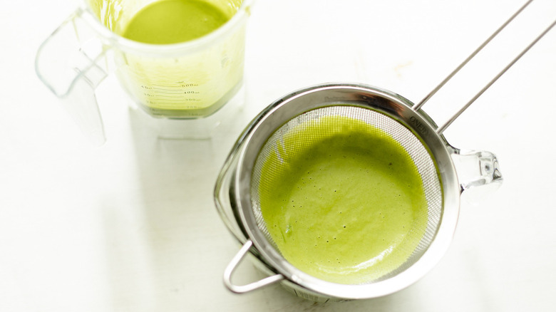 To get the smoothest texture possible, there's one more step: passing the blended soup through a fine mesh sieve, which will remove any fibrous bits of asparagus that remain. Discard any pulp, and the resulting soup will be rich and silky smooth.