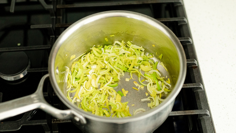 Cook the leeks for the asparagus vichyssoise