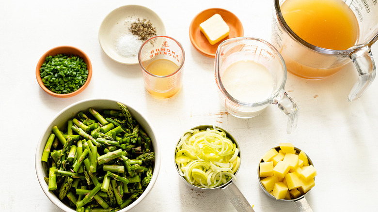 Gather the ingredients for this asparagus vichyssoise