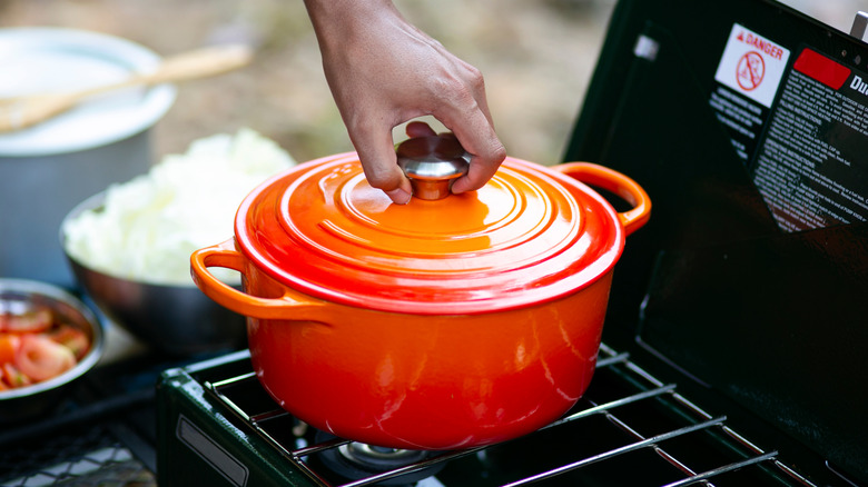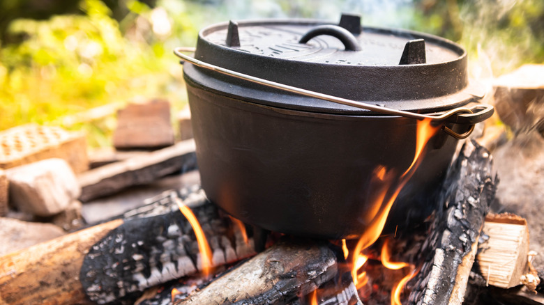 Handles made of non-heat resistant materials such as plastic or wood are the main issue regarding oven use for Dutch oven (via Dutch Ovens Cookware). OvenSpot recommends informing yourself regarding your specific model of Dutch oven because there are even differences in heat resistance within the same manufacturer. Dutch Ovens Cookware indicates that popular models generally range from 375 to 500 F when it comes to heat resistance. Let's face it, unless you are regularly cooking over an open fire, 500 F should be hot enough for your needs. If you're looking for more, Oven Spot suggests seeking out seasoned cast-iron. Heat resistant up to 700 F, it will cover even the most experimental home cook applications.