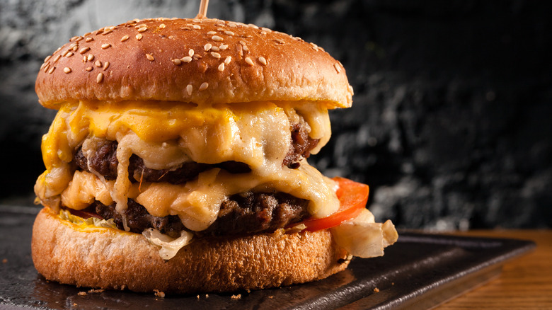 During an interview with the Food Network, Flay revealed his special process to get the cheese melted perfectly. It's not a mind-blowing method by any stretch of the imagination, but it always works. Flay melts the cheese right onto the cooking burger itself, as opposed to adding it at the last second after its departure from the grill. "Melt the cheese completely," he suggests. "Use two slices of cheese — I like classic American — and close the lid to allow the cheese to get nice and melty." Obviously you can use whatever kind of cheese you want, but just make sure to toss a couple of slices directly onto the meat to achieve ultimate gooeyness.