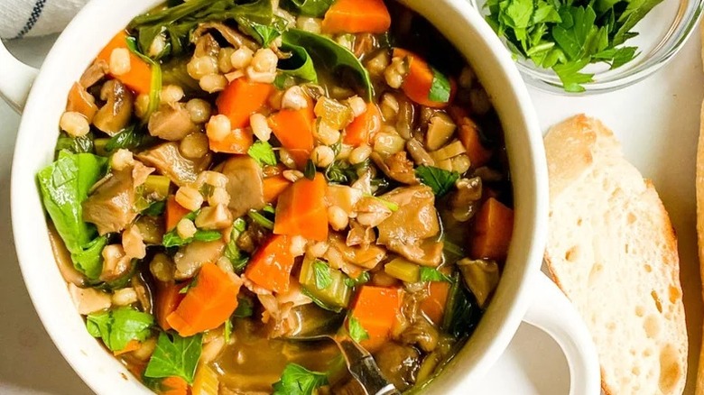 The Spruce Eats recommends pairing your barley with garlic, or serving it seasoned with cinnamon. Additionally, herbs like marjoram, parsley, and thyme can really add a deep herbaceous note to your base grains. Hot barley cereal goes as well with either sweet jams or fresh fruit as it does with breakfast meat and eggs. One savory dish is something your grandmother may have cooked: Beef and barley soup. This American favorite dates back to before settlers even left Europe. There are excellent vegetarian takes on this classic dish as well, so enjoy it however you like. In addition to soups, barley can add grounding, filling volume to any salad, especially one with roasted vegetables.
