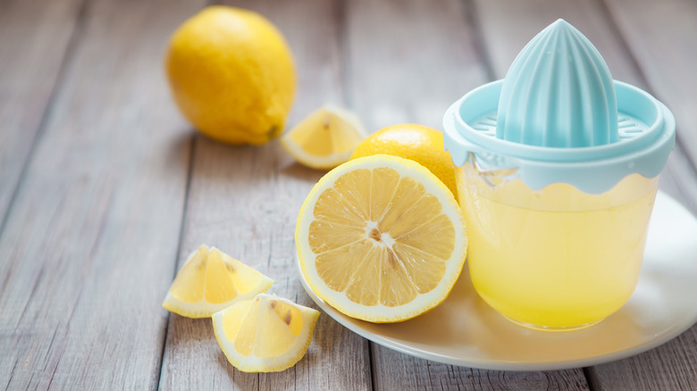 The combination of milk and lemon juice is probably the most classic buttermilk substitute, we assume because of its simplicity and availability for many cooks. For this substitution, you'll need 1 tablespoon of freshly squeezed lemon juice per cup of milk that you need to swap for a cup of buttermilk. Stir the lemon juice into the milk and let it sit for a few minutes while the acid of the lemon juice goes to work on the milk. According to Cook's Illustrated, small curds will begin to appear in the milk shortly after incorporating the lemon juice, which is an entirely normal reaction. If you're using low or non-fat milk, you may see less of a reaction because of the lower fat content.