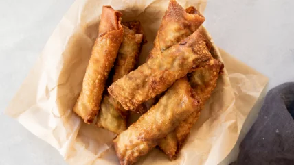 Fry the egg rolls until golden, about three to four minutes, turning as needed to ensure they're crispy and browned on all sides. Then, simply remove from the skillet to drain on a rack or paper towel-lined plate. Continue frying until all of the egg rolls have been cooked, and allow to cool slightly before serving. McGlinn eats these all on their own, but you could also make a provolone queso or a sriracha aioli for a touch of spice!