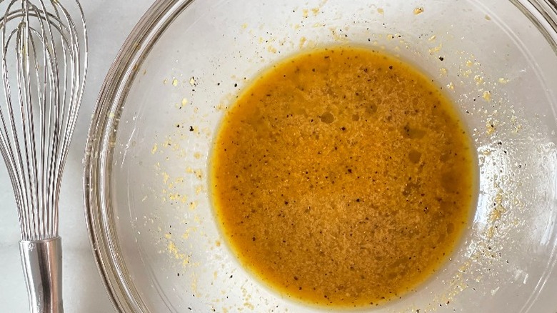 The final step before indulging in the salad is to make your dressing, which Goldstein describes as "tangy and creamy with a bright vinegar taste." He also says the dressing is like sunshine. To see what he means, let's get started creating a memorable finish to this mouthwatering meal.