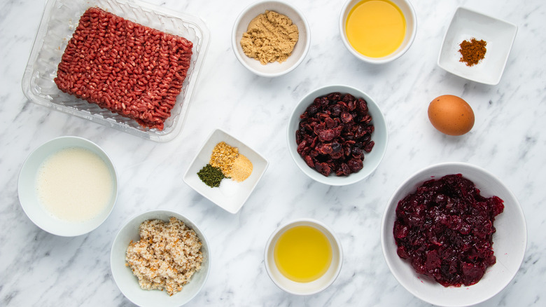 Gather the ingredients for cranberry meatballs