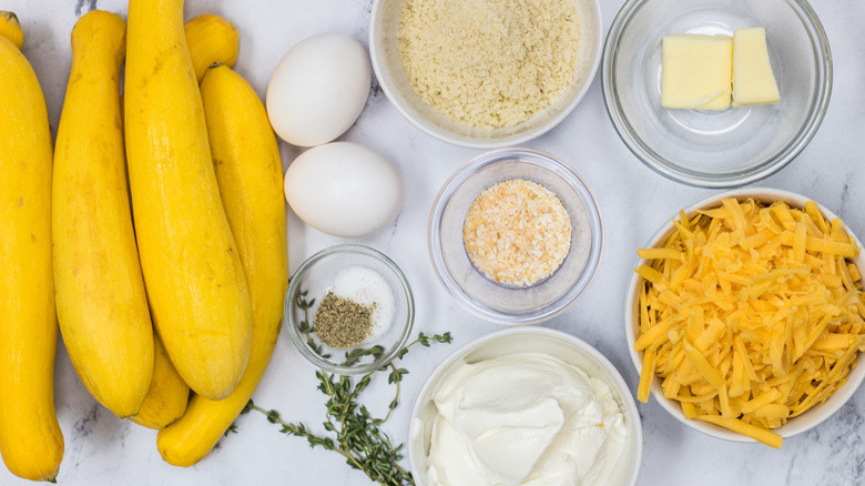 Gather the yellow squash casserole ingredients