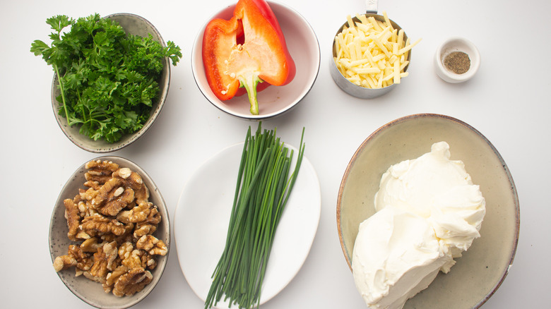 Gather the ingredients for this Christmas cheese ball