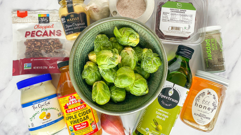 Gather your ingredients for Brussels sprouts slaw