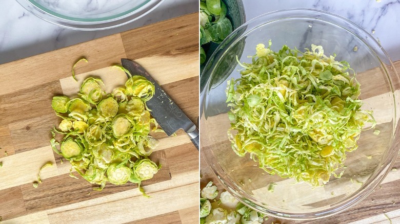 - Shred the Brussels sprouts using a chef's knife, mandoline, or food processor with a shredding blade.