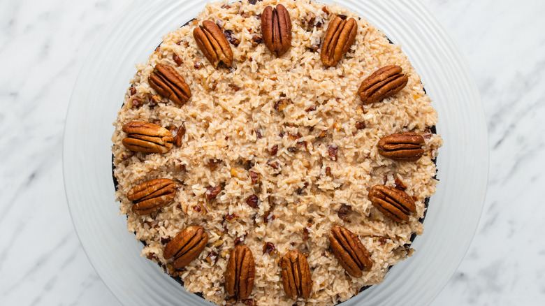 - Optionally decorate the cake with the halved pecans, then serve and enjoy.
