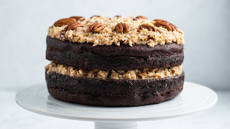 Old-fashioned German chocolate cake is one of the best recipes for chocolate lovers. It comes as no surprise that people around the world serve it on a daily basis, because it's jaw-dropping good and packed with chocolate in every single bite. According to Apple Annies, German cake actually has roots in the United States, which may cause some people to scratch their heads. You see, an English-American baker by the name of Samuel German (see where the German came from now?), whipped up a unique and dark baking chocolate, which is used in this cake. Turns out, his concoction was incredibly tasty, and we're thankful to this day for the gift that Mr. German gave to us.