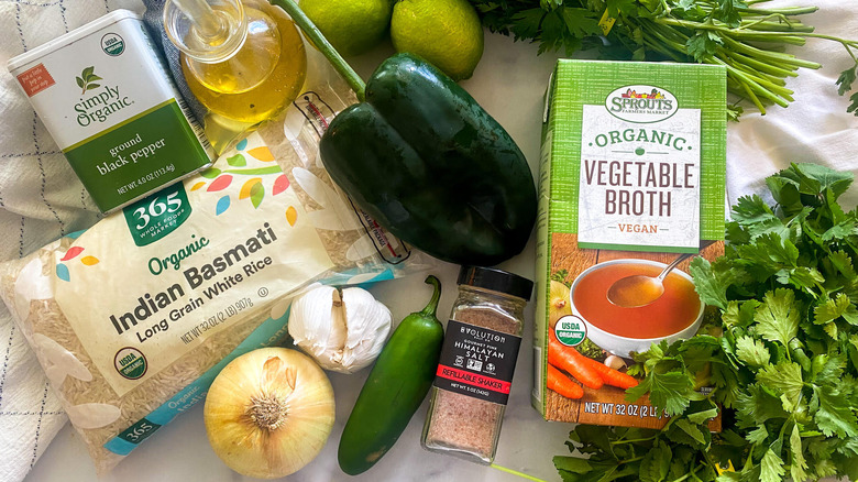 Gather the ingredients for green rice