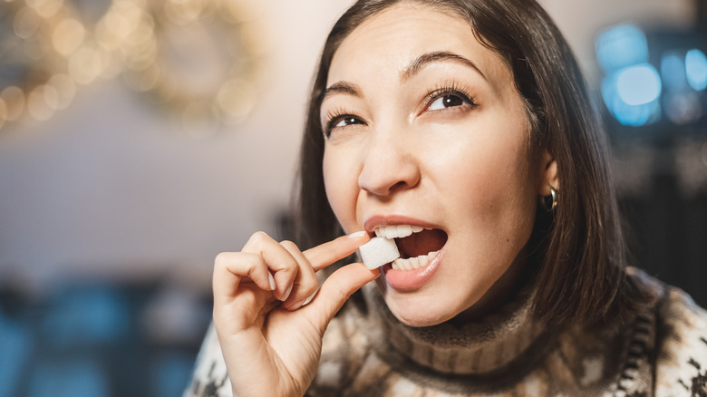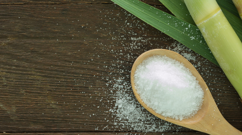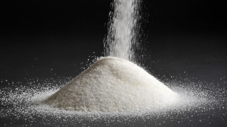 Unlike comparatively minimally processed raw sugar, white sugar goes through a few more steps before being packaged, the last of which is milling into the desired size. As Michigan State University describes, any sort of processed sugar is "ground into fine, regular and large crystals," it all depends on how the sugar is to be used in cooking. Large crystals include coarse sanding sugar, which you may have sprinkled on your Christmas cookies; regular crystals include good old granulated sugar, and fine crystals include caster sugar and powdered sugar.