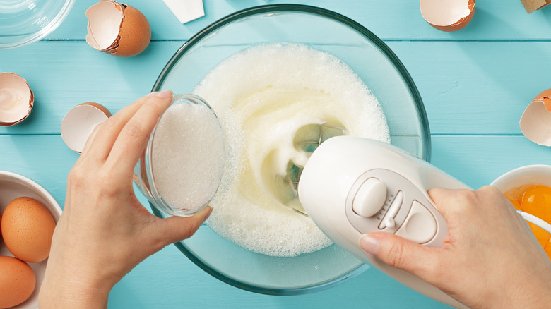 In recipes that call for creaming caster sugar with butter, if you're using granulated sugar instead, The Spruce Eats recommends using colder butter and creaming it with the sugar just a little longer than normal. This will help it mesh a little better before the butter warms. They also advise that, when beating egg whites with sugar, if you must use granulated instead of caster, "mix at a lower speed to allow the sugar more time to melt." Baker and author Helen Goh gave the same tip to Food52, and suggested checking the meringue by touch; it's ready when "you can barely feel the sugar granules between your thumb and forefinger." If the larger granulated sugar crystals aren't fully dissolved, you may get telltale speckles and a less airy texture in your meringue.