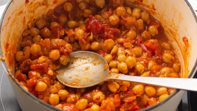 Recipe developer Susan Olayinka of The Flexible Fridge loves a good chickpea dish, and her Moroccan chickpea stew is proof of that. "I love chickpeas and have them almost weekly," Olayinka says about the tasty legumes. "They are so versatile and easy to make." Indeed they are! With her chickpea stew recipe, Olayinka keeps things completely vegan, but doesn't mean she's skimping out on flavor or nutrients. Paired with onion and tomatoes, these chickpeas take on a vegetable flavor, and thanks to the addition of ginger, cumin, and cinnamon, this stew is a masterclass in warm, savory goodness.