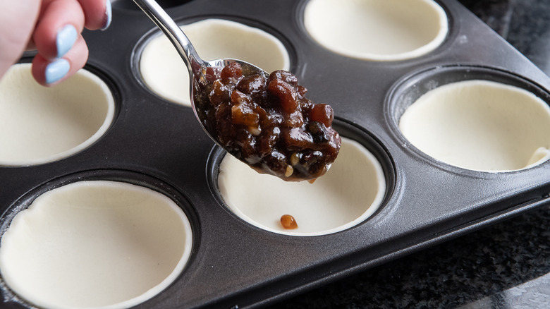 - Fill each pie with mincemeat until it is just below the edge of the pastry.