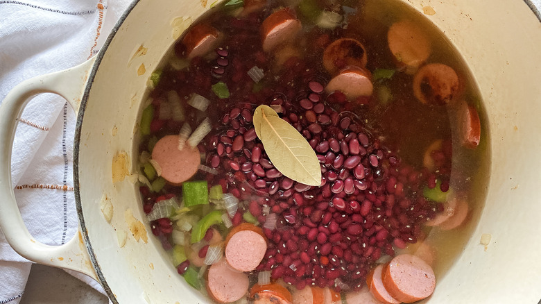 - Serve the red bean and sausage mixture over cooked white rice.