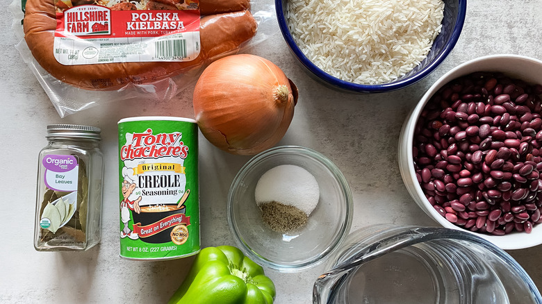 Gather your ingredients to make New Orleans red beans and rice
