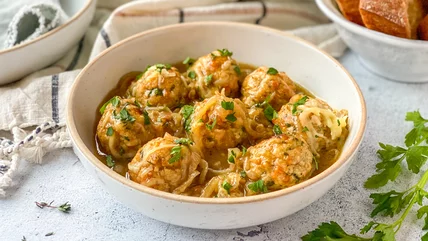 Anything left? "Leftovers can be kept in an airtight container for up to 5 days in the refrigerator. They can also be frozen and kept for up to 3 months," MacLean shares. Hopefully, these French onion chicken meatballs hit the spot for you and your family!