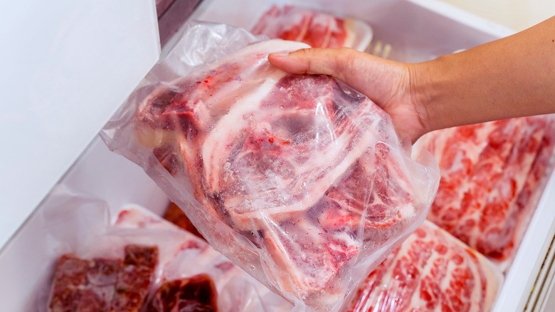 According to Kitchn, defrosting meat outside of the refrigerator is actually quite a risky game. Because of the way microwaves heat food, certain parts of the meat can cook through while others remain frozen. Not only does this ultimately yield uneven cooking results, but it could also allow dangerous bacteria to proliferate. While the warm sections of the meat sit at the "danger zone" (the temperature at which bacteria grows best), others are still in the process of defrosting, giving that bacteria more time to spread. But if defrosting meat in the microwave is so bad, what's a time-strapped cook to do instead?