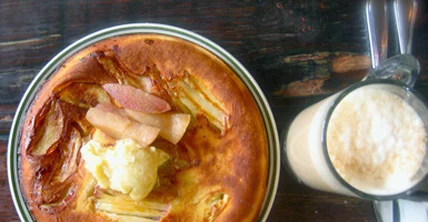 Roebling Tea Room This pannekoek-like creation (pictured) is a flapjack on steroids. Expansive, pleasantly spongy and sweetened with jewel-colored pears and apples, the whole thing is topped with a creamy dollop of spiced butter; ask for a side of apple butter and a slice of lemon as well. 143 Roebling St. (at Driggs Ave.) Brooklyn; 718-963-0760 or roeblingtearoom.com