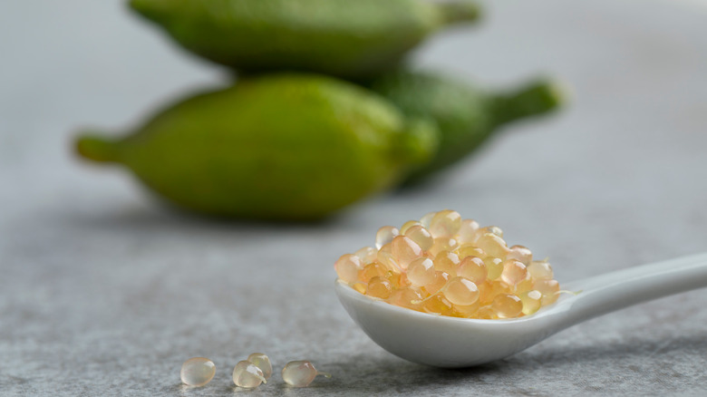 This unusual type of citrus is small and oblong, about the size of a finger, hence the name. They have thin, shiny skin that ranges in color from green to yellow, and a juicy interior filled with tiny, pearl-like vesicles that burst with flavor when bitten into (via Food 52). The vesicles resemble fish eggs, which is why they are sometimes called caviar limes. But there is so much more to know and understand about finger limes — and why you should try using them for yourself.