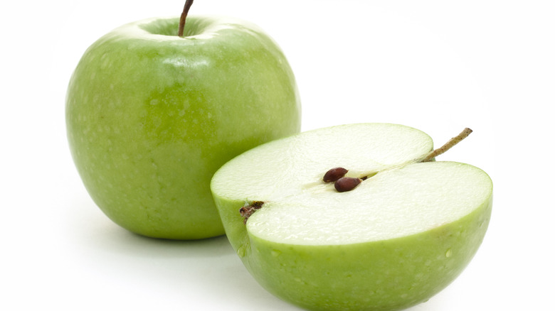 This canned pumpkin purée hack sounds bizarre but stay with us. Before dumping pumpkin out of the can, we recommend adding a few slices of a Granny Smith or other green apple to the mixture. Allow the slices to sit for a few hours before removing them and continuing with your baking. That said, you don't have to toss them if you don't want to. These tart apples are a favorite of chefs and home bakers alike, meaning they won't feel out of place in your next batch of pumpkin cookies or pumpkin banana bread.