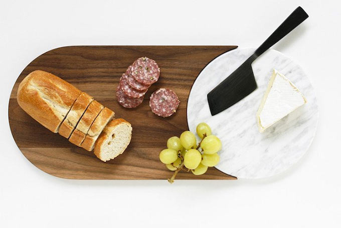 It's a cheese board! It's a charcuterie plate! Actually, it can be both: Efficient hosts will be able to serve two different appetizers on this smart walnut-and-marble slab.