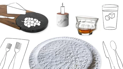A set of stout marble candleholders topped with a thin ring of copper lends an air of elegance to any table—even if you're serving something as un-serious as fried chicken and biscuits.