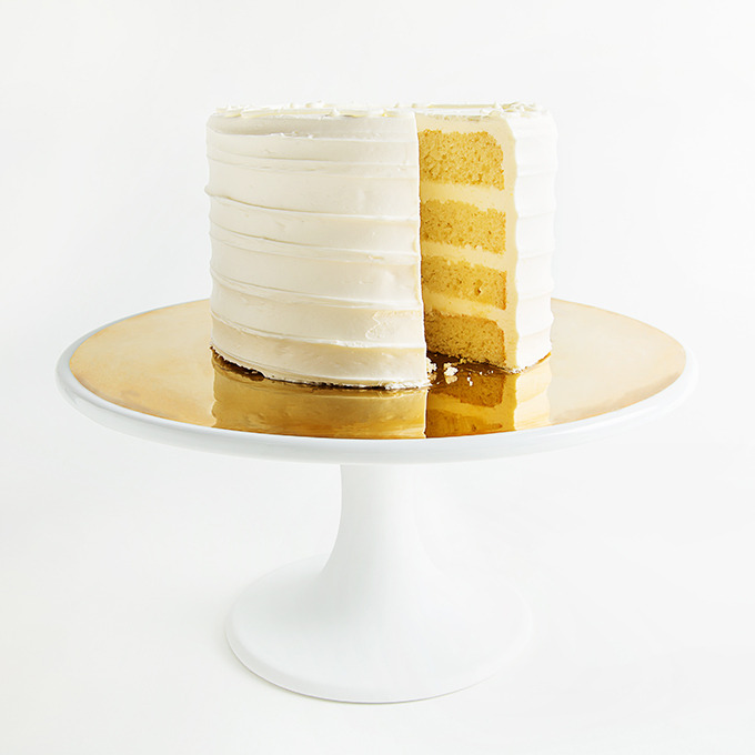 Should your stand be as pretty as the cake? That's seems to be Brit expats and New York City designers Harriet Macdonald and Andrew Corrie's line of thought when sculpting this elegant cake stand. The modern muted white gets a flash of color with the handpainted gold surface, making each slice of cake extra festive.