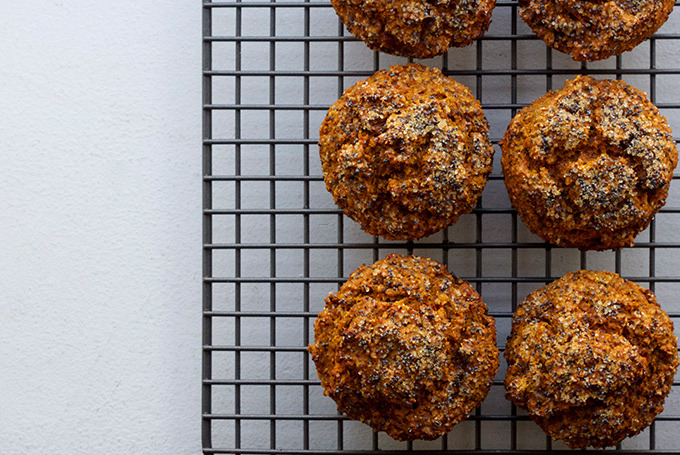 Greek yogurt takes the place of butter in these wholesome baked goods. The poppy seeds and turbinado sugar on top crisp up for a muffin top you'll actually be proud of.