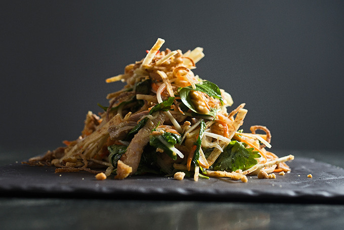 This salad was inspired by a severe noodle rut, so you, too, can put take-out noodles in the corner in favor of this bright textural wonder.