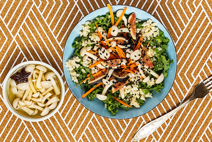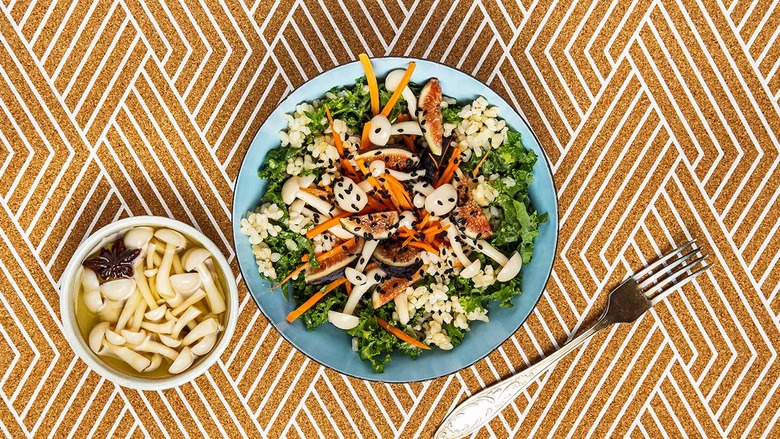 This is a salad that will actually fill you up—it has a hearty brown rice base mixed with all that kale. Top with adorable briny beech mushrooms that look like they came straight out of a game of Super Mario Bro., and you're good to go.