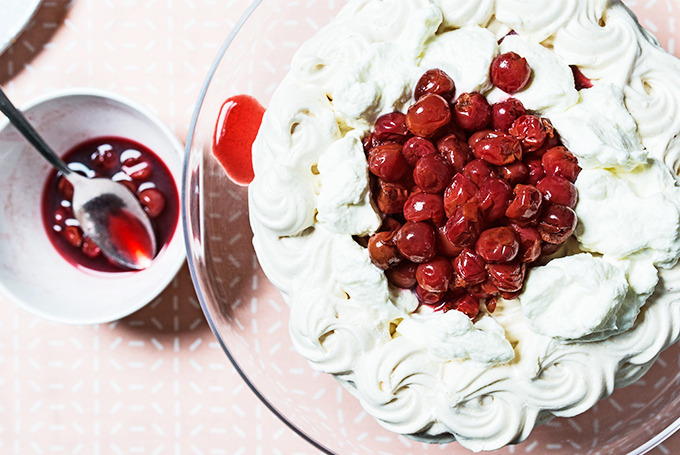 Tracy Obolsky's pavlova is the most delicious tongue twister we've had. When good cherries are elusive, sub in your fruit of choice, a spoonful of jam or just enjoy the cumulus cloud of meringue on its own.