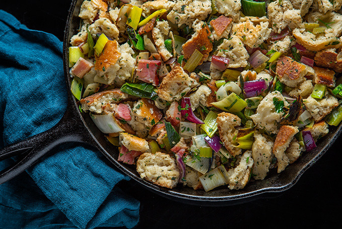 What more appropriate way to stuff yourself than with stuffing? Especially this version from Eli Kulp, a spicy, smoky blend that reads as if a loaded baked potato spontaneously combusted into a skillet of toasted bread.