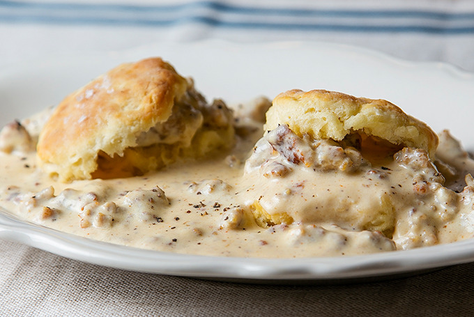 A long day of revelry ahead requires a solid breakfast as preparation. Keep it Southern with flaky biscuits and velvety sausage gravy. And if you feel like starting the flow of alcohol early, there's no shame in enjoying a Ramos Gin Fizz.