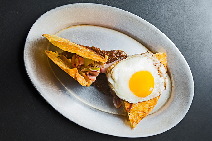 Show your devotion to over-the-top eats with a grilled cheese that's covered in a crust of fried cheddar. Thin slices of Granny Smith apples make an appearance, so you can officially say you got your day's worth of fresh produce.