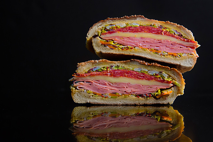 No sandwich best represents New Orleans like this one. Pile provolone, mortadella and soppressata on a loaf of bread (with the works, of course), and smush it down to oblivion with the heaviest cookbook you own.