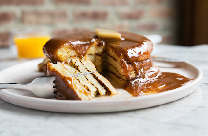 Breakfast for dinner? Sure, especially when you might have missed your morning meal because you were running to mail your return in on time. Spice up these light and fluffy pancakes with homemade hazelnut maple syrup.