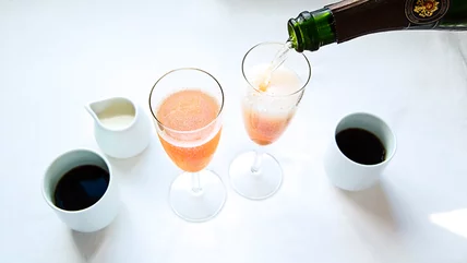 Start off the party with a little bubbly—this batched peach cocktail comes together in a flash when you blend the sweet fruit purée.