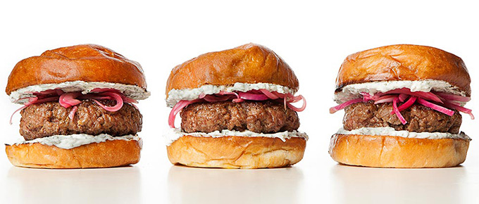 They'll all be expecting beef, so throw your friends for a loop with this cumin-scented lamb patty. The refreshing yogurt sauce is speckled with four herbs, and quick-pickled red onions add both a pop of color and a vinegary bite.