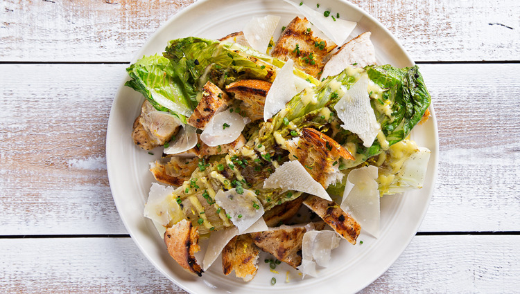 The classic Caesar salad gets a summer-forward makeover when it meets one of our favorite seasonal staples: the grill. Once you've crisped up those romaine leaves and sourdough croutons, it's all about the dressing—a balanced mix of garlic, anchovies, lemon and eggs. Have extra dressing left over? Slice up some cucumbers to dip for the perfect snack, with the help of the-tried-and-true KitchenAid® Food Processor Attachment—an ace for slicing, shredding and julienning our favorite fruits and vegetables.